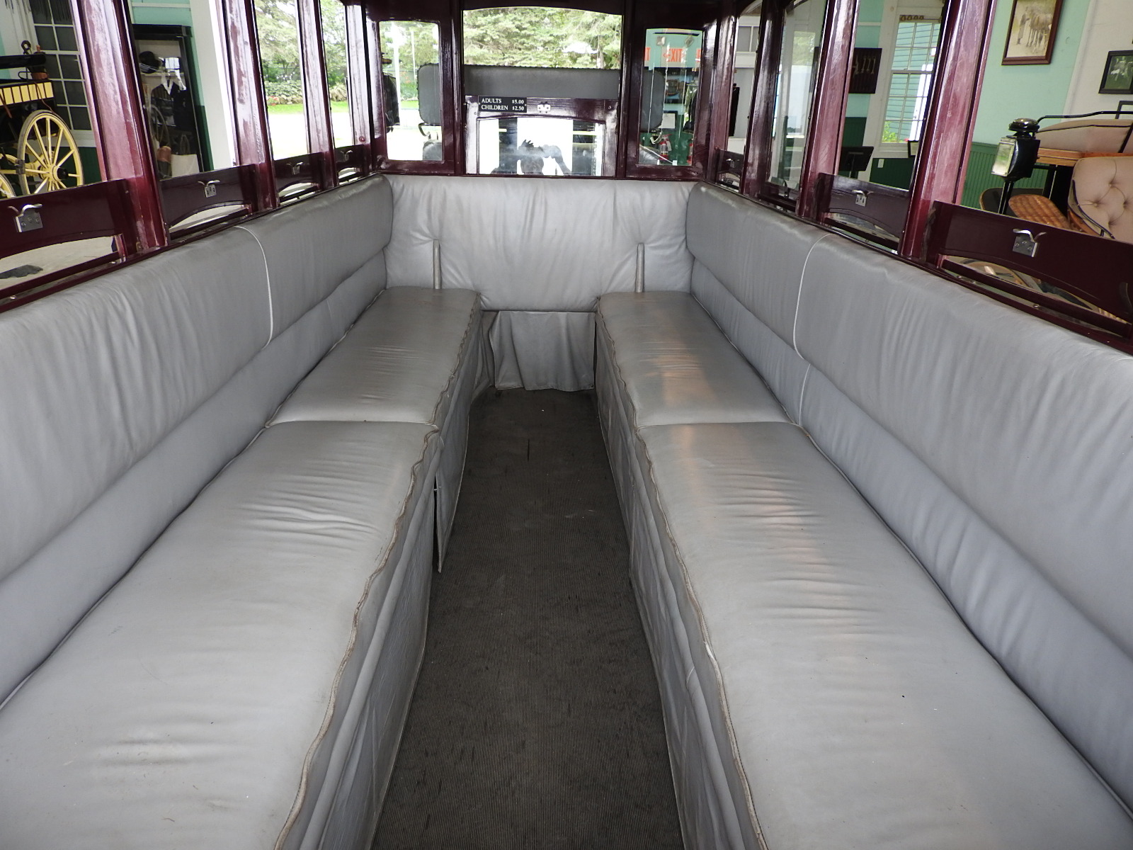 The carriage in the picture above is a Grand Hotel taxi not being used at this time. Below is the inside of this taxi. It is laid out like a limousine to haul a large group.