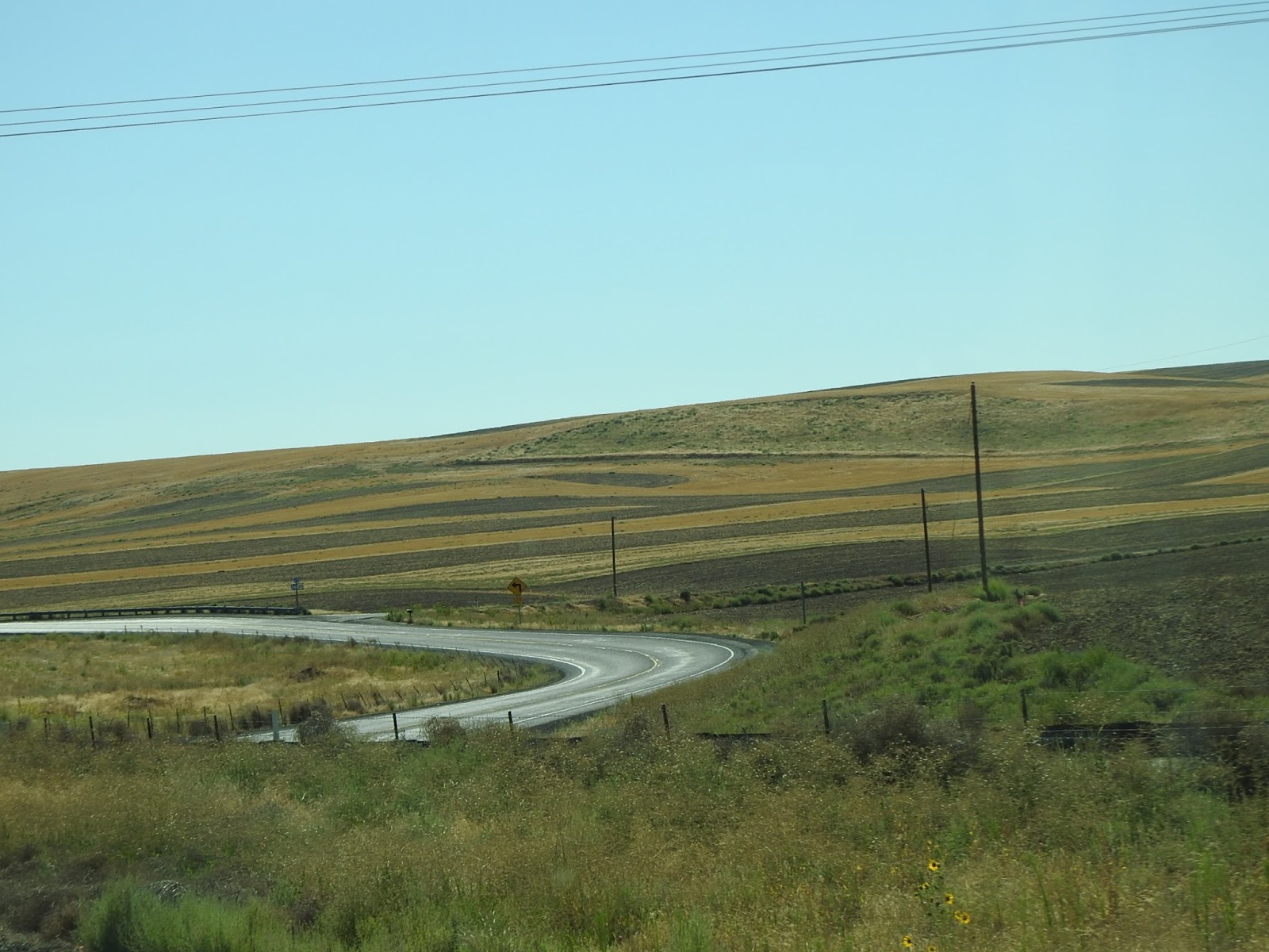 As you can see, we are out of the smoke. Our route takes us through beautiful agricultural areas. I took this through the windshield of the coach.